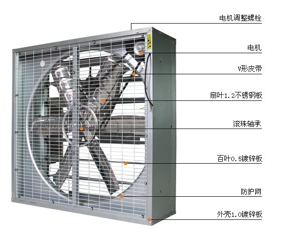 鐵皮負(fù)壓風(fēng)機(jī),顧名思義,其外殼主要采用鐵皮(鍍鋅板)材質(zhì)制成,利用負(fù)壓原理進(jìn)行工作,主要用于工業(yè)廠房、倉庫、養(yǎng)殖場、溫室大棚等場所的通風(fēng)換氣、降溫除濕。